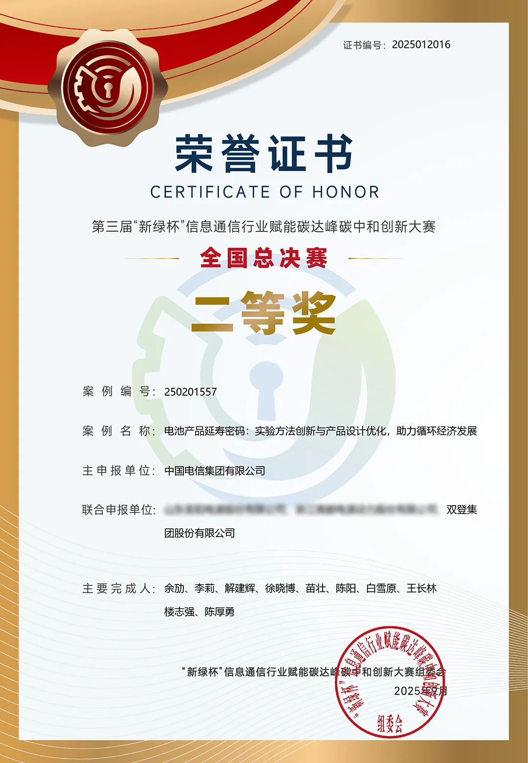 作为信息通信领域绿色低碳创新的顶级赛事,本届大赛由中国信息通信研究院、中国互联网协会、中国通信企业协会联合主办,旨在汇聚创新智慧,挖掘前沿技术,展示通信行业在国家碳达峰碳中和战略实践中的最新创新成果。本次大赛汇聚数千个优质项目,最终上百支精英队伍跻身总决赛,角逐最高荣誉。开云手机入口官网股份一路过关斩将,两大项目齐获奖,不仅是对登联合创新能力的高度肯定,更凸显业界对开云手机入口官网股份开云手机入口官网绿电存储技术领先性与应用价值的充分认可。